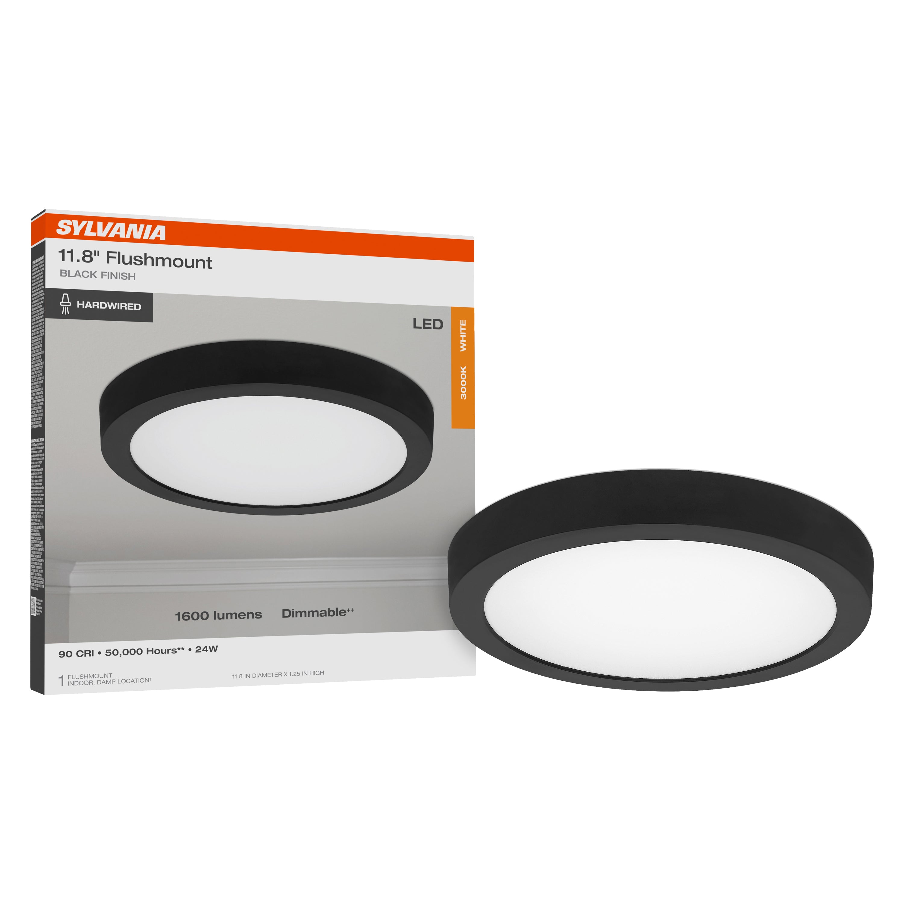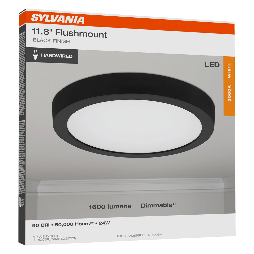 SYLVANIA 12" Flush Mount LED Fixture, 24W, 90 CRI, 1600 Lms, Hardwired, 3000K, Black
