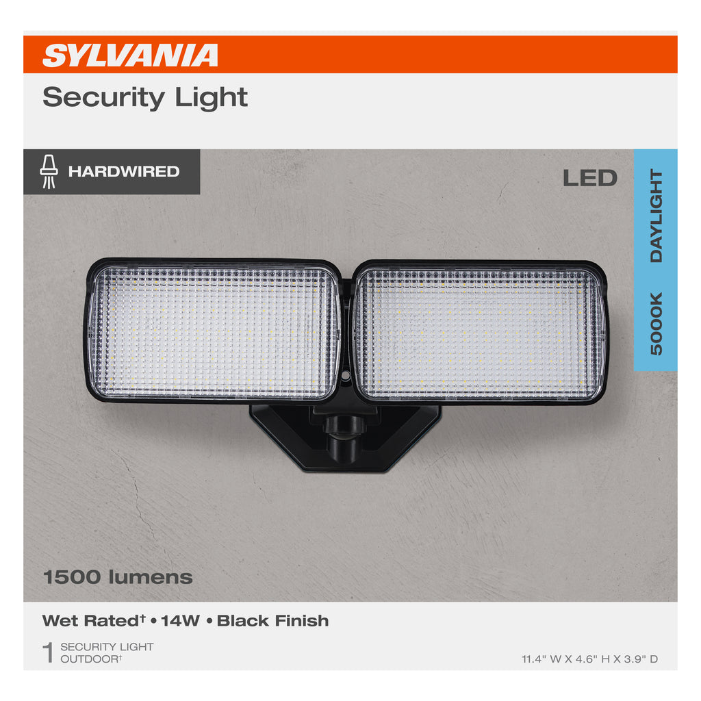 SYLVANIA 14W LED Security Light, Hardwired, Wet Rated, 1500 Lms, 5000K, Daylight