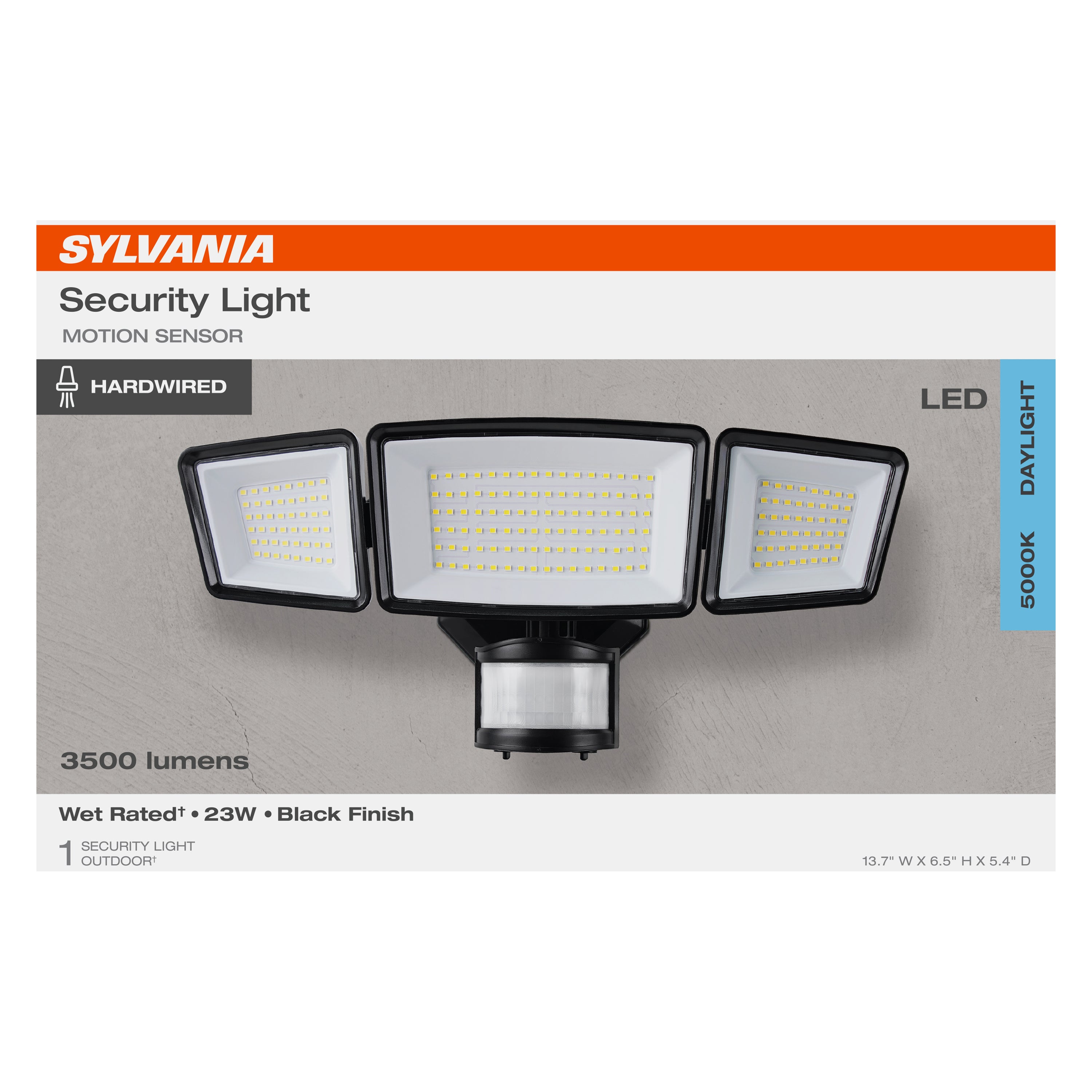 SYLVANIA 23W Security LED Light with Motion Sensor, Hardwired, 3500 Lms, Wet Rated, 5000K, Daylight