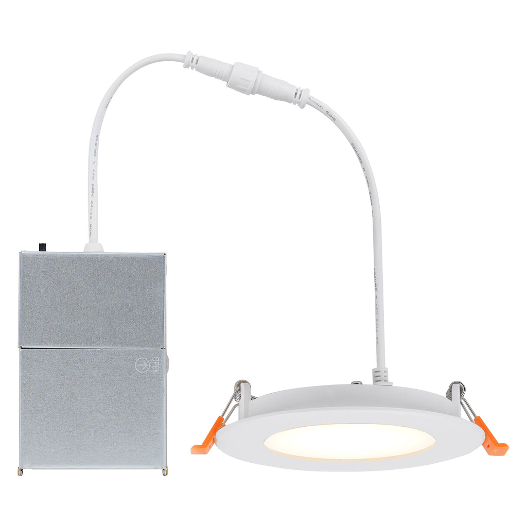 SYLVANIA 4" Slim Microdisk Downlight, 10W, 5 CCT Select (2700K - 5000K), 700 Lms, 90 CRI, Dimmable, Wet-Rated, White - 6 PK