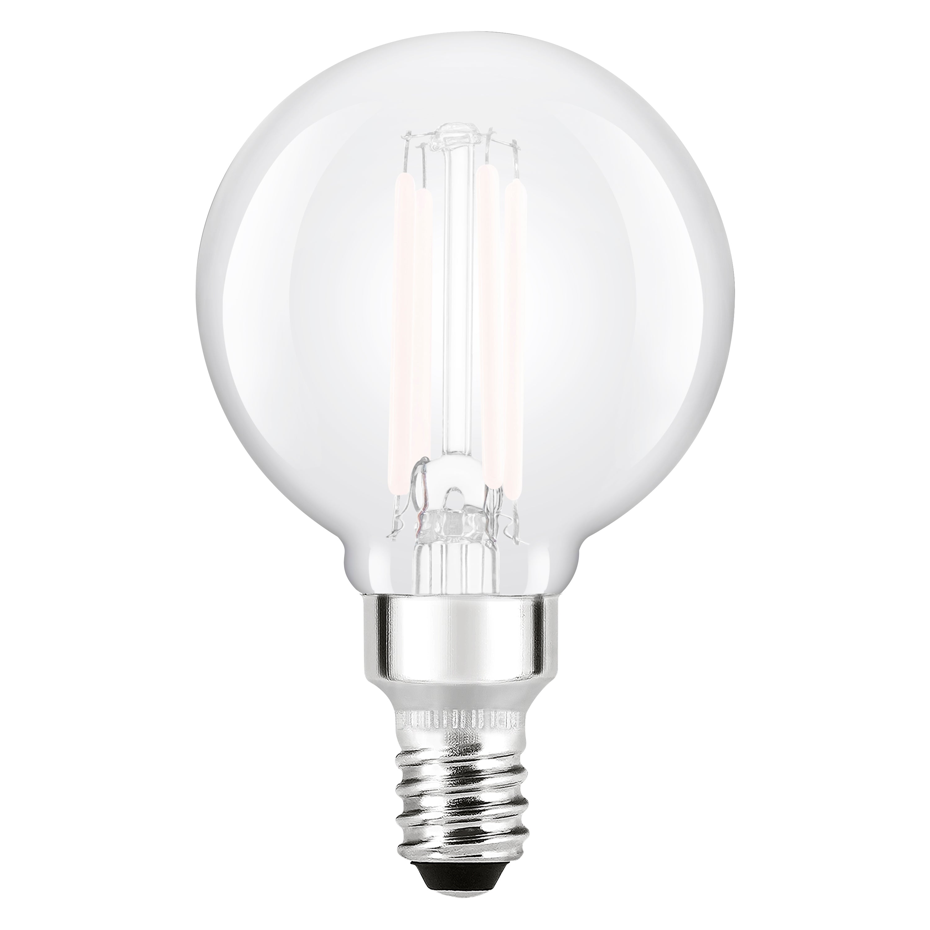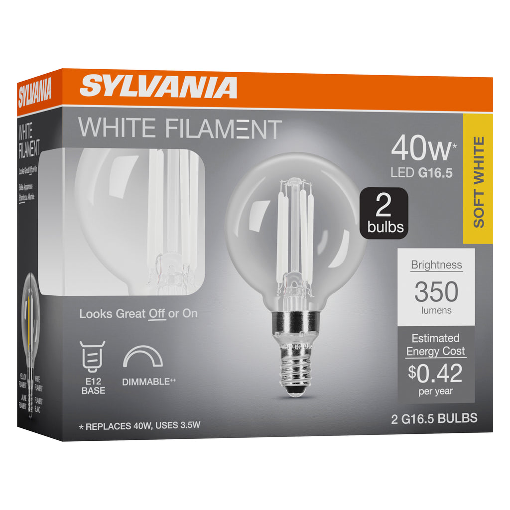 SYLVANIA G16.5 Clear Globe LED White Filament Bulb, 3.5W, Dimmable, 350 Lms, Candelabra Base, 2700K, Soft White - 2 PK