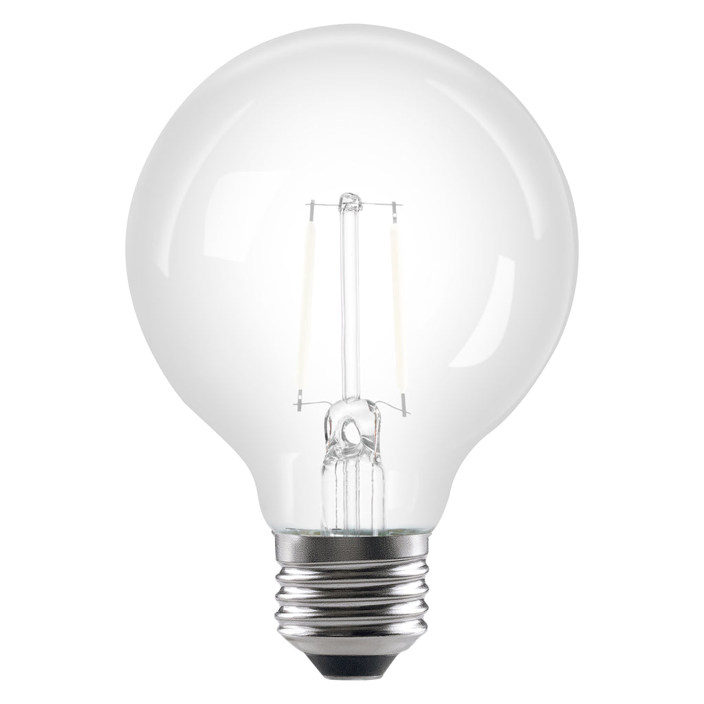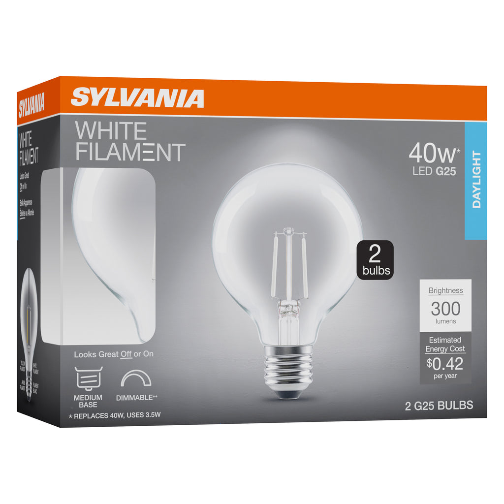 SYLVANIA G25 Clear Globe LED White Filament Bulb, 3.5W, Dimmable, 300 Lms, Medium Base, 5000K, Daylight - 2 PK