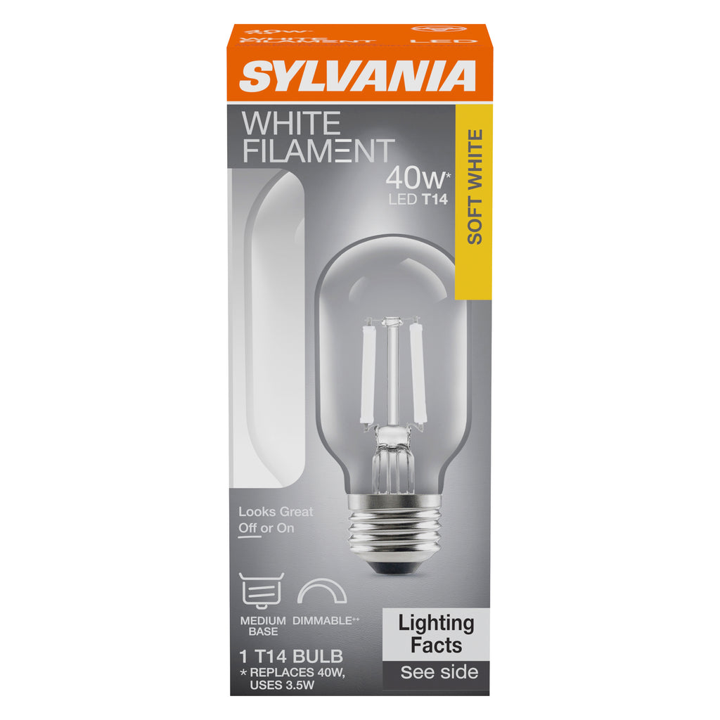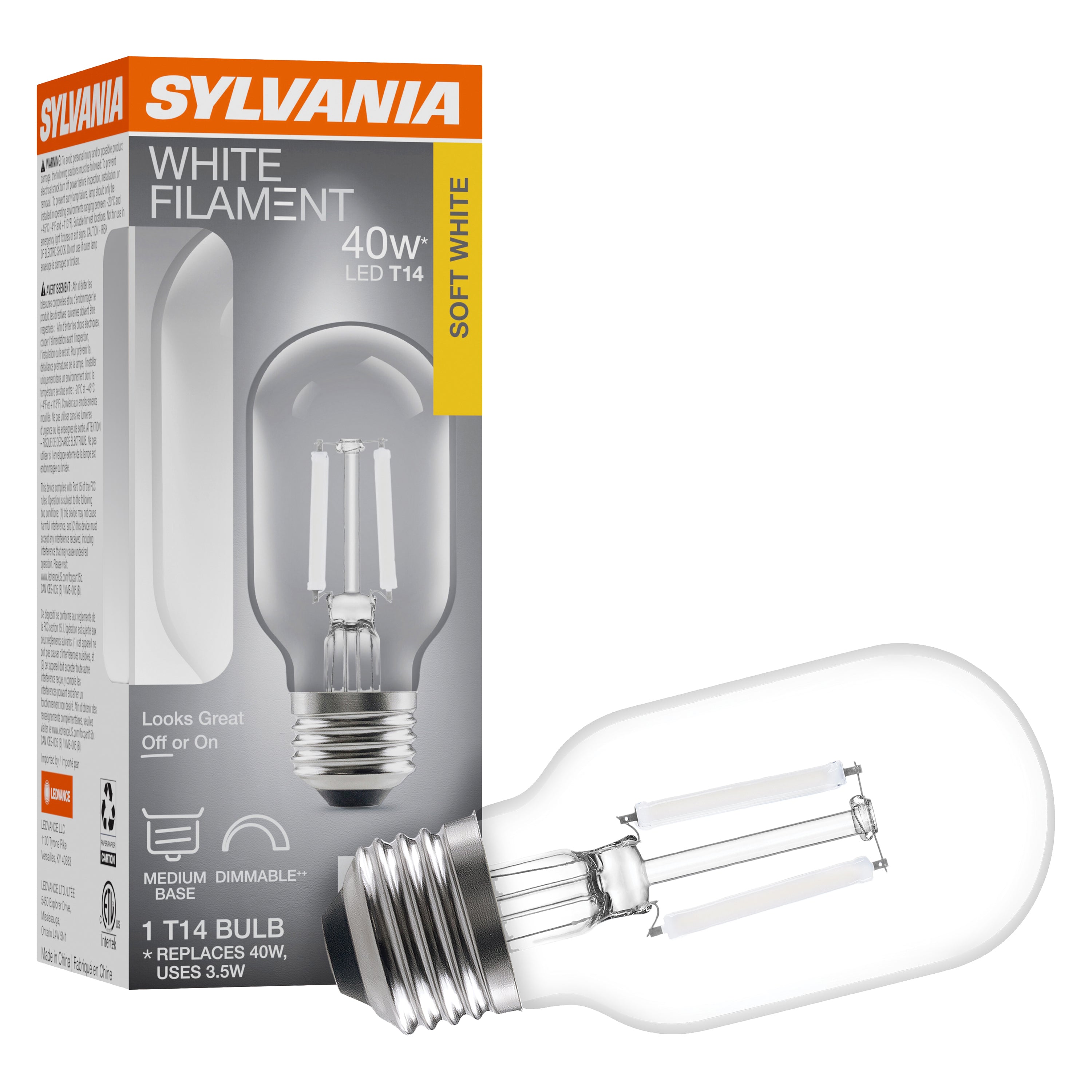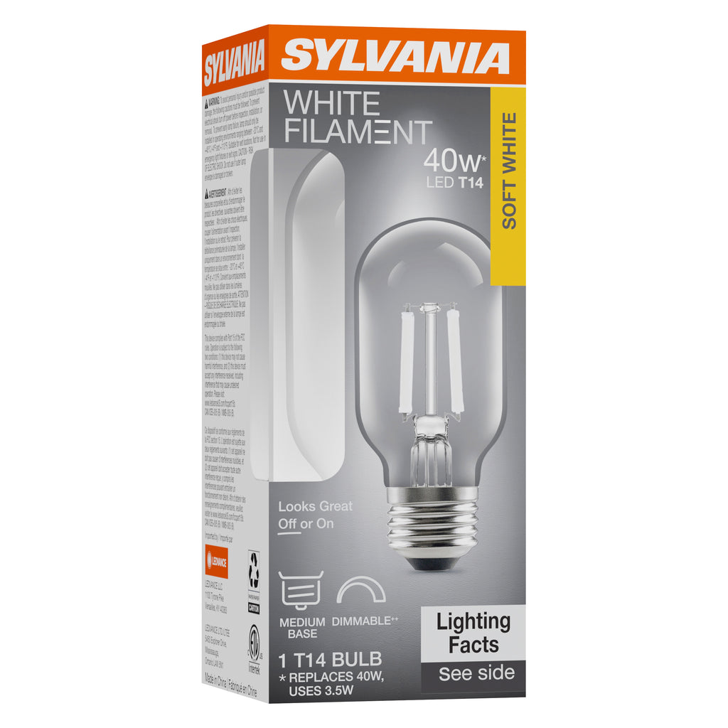 SYLVANIA T14 Clear LED White Filament Bulb, 3.5W, Dimmable, 300 Lms, Medium Base, 2700K, Soft White - 1 PK